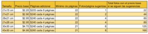 Aquí debajo cuadro de sugerencias de cantidad de fotos por página según el tamaño
