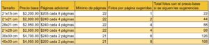Aquí debajo cuadro de sugerencias de cantidad de fotos por página según el tamaño